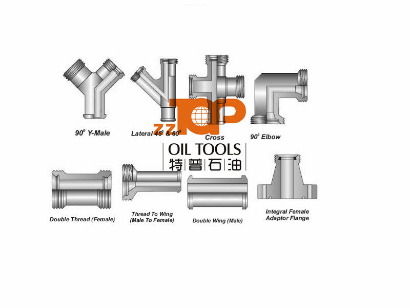 The Integral Fittings are made by high strength forged alloy steel which are all heat treated to enhance load-bearing capacity and lengthen service life. They may have union ends for quick and easy connection with various cementing or fracturing equipment, or have a welded end connector which is designed as per API Spec. 6A.